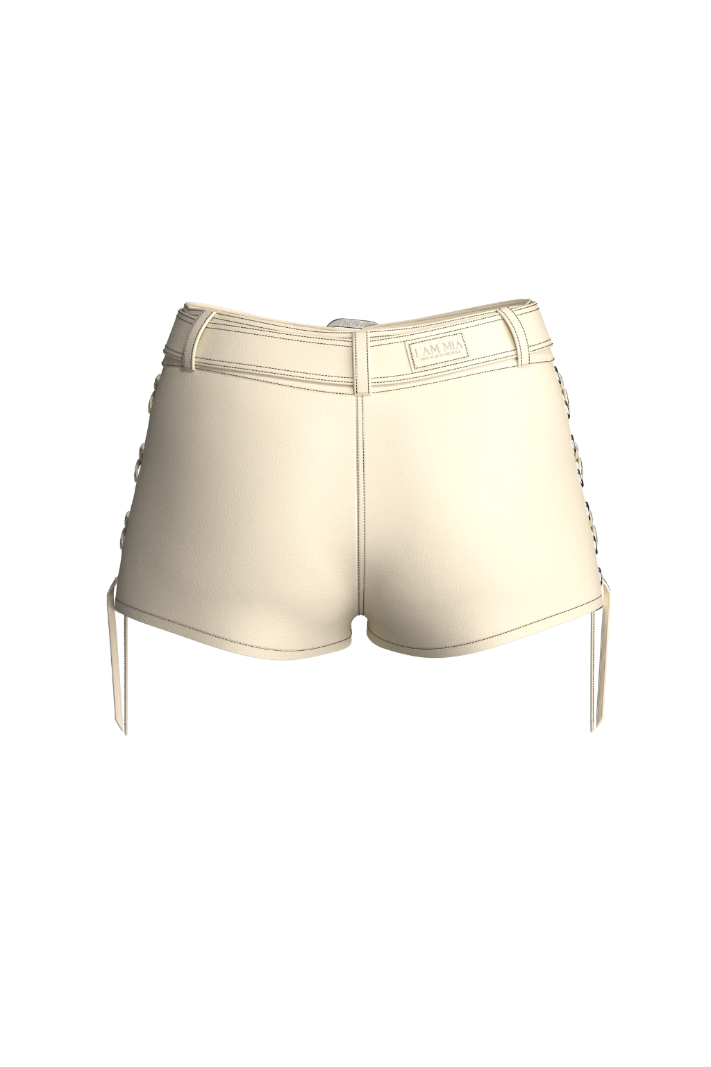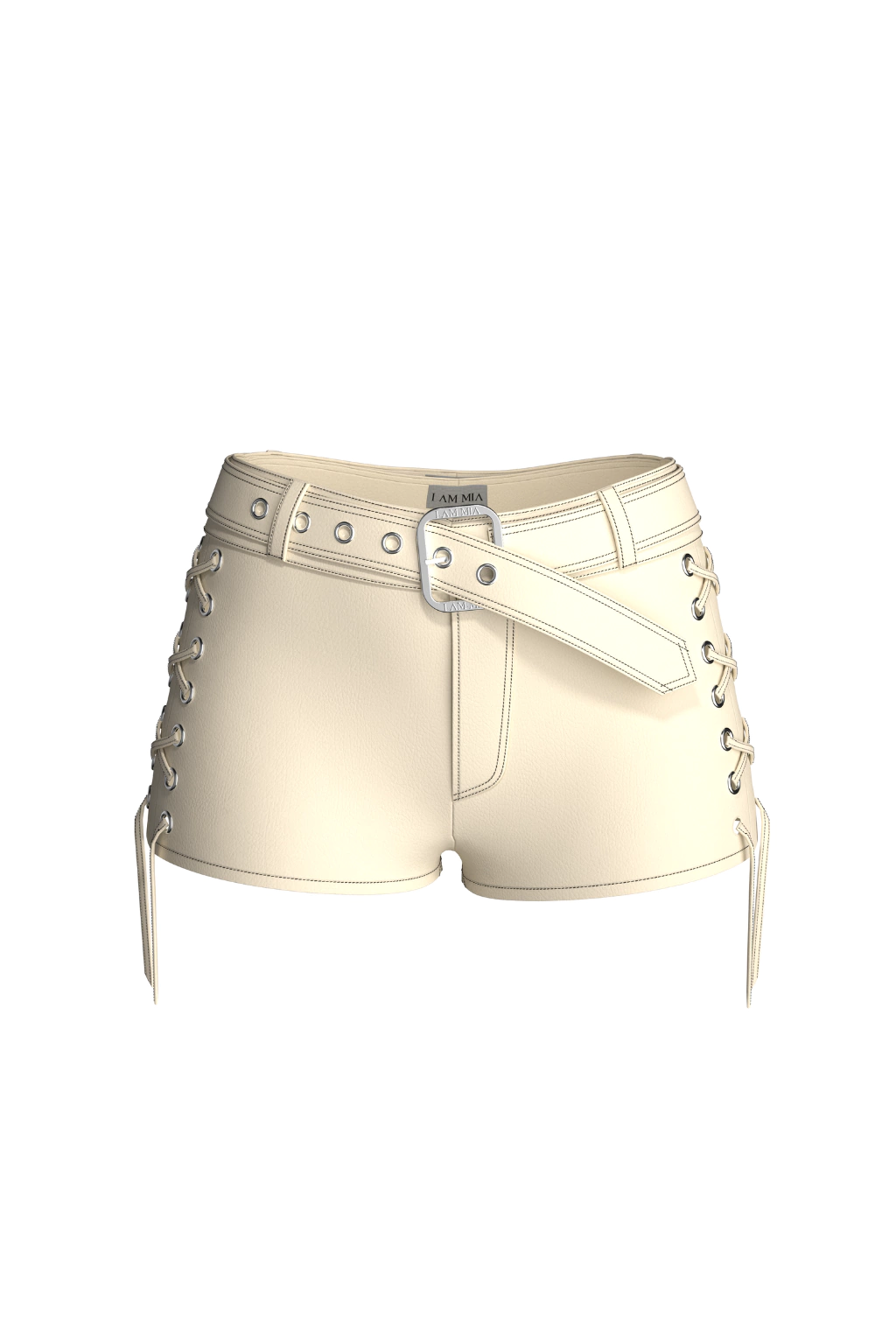 short con cierre interno (ykk), boton y cinturon desmontable, detalle de ojales y tiras en sus laterales