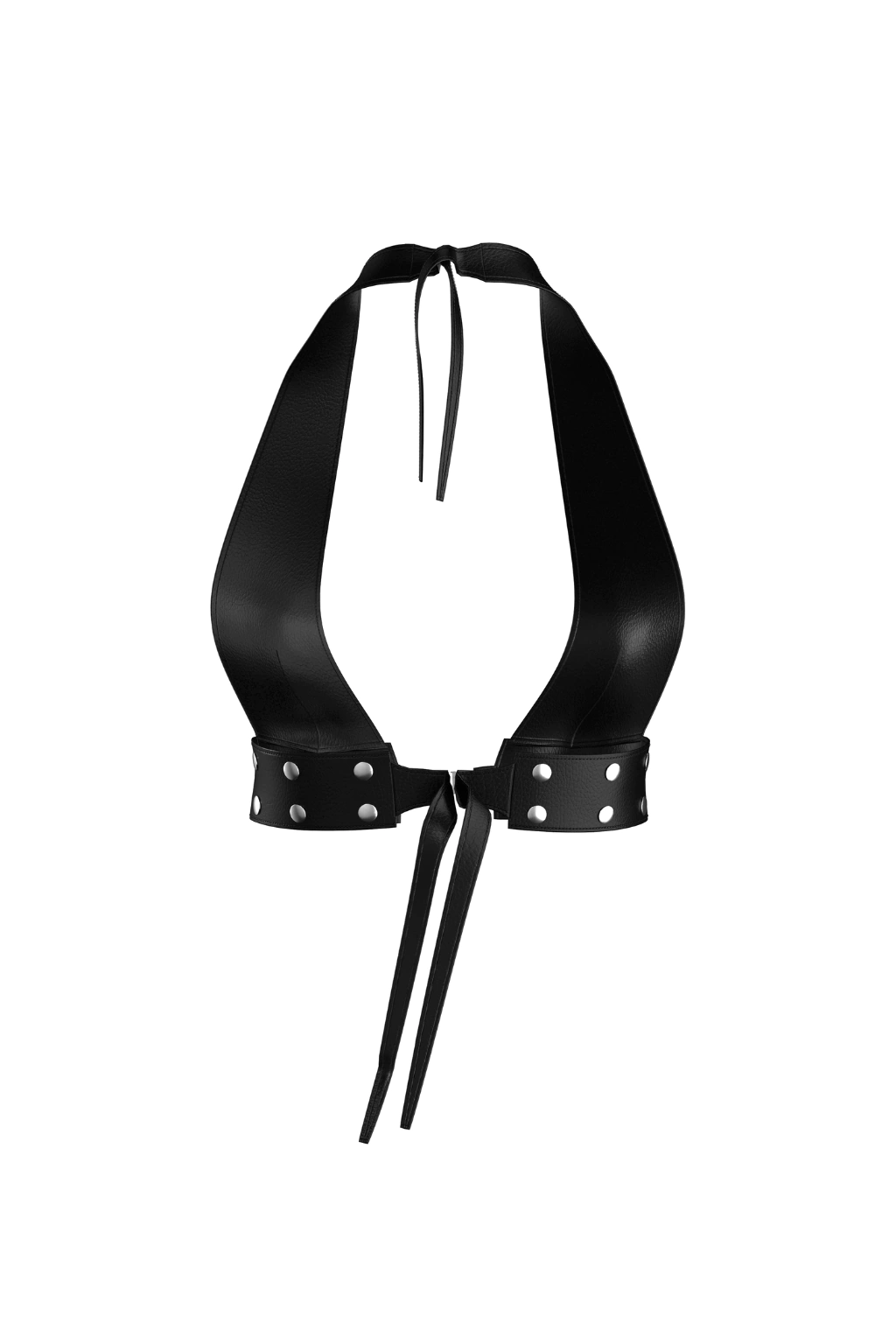 Este elegante top de cuerina importada cuenta con un suave velvet en el interior, brindando comodidad y estilo. Su talle único, regulable en cuello y espalda, se adapta perfectamente a bustos de 80 a 120 cm.